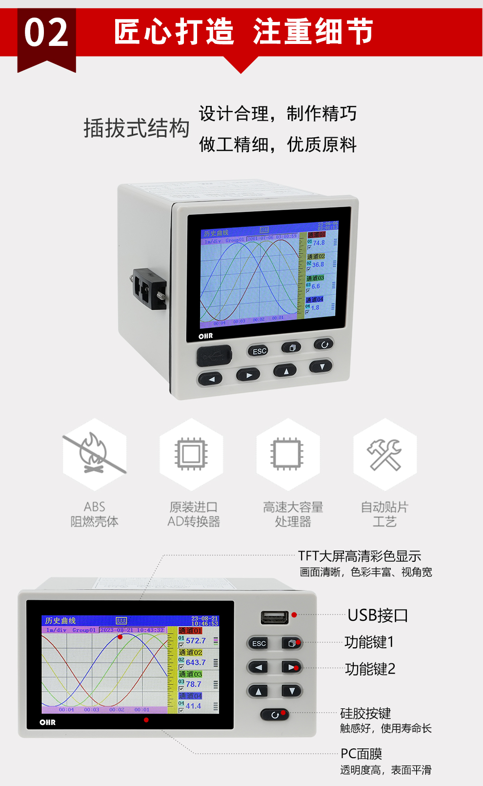OHR-G100T系列彩色無(wú)紙記錄儀