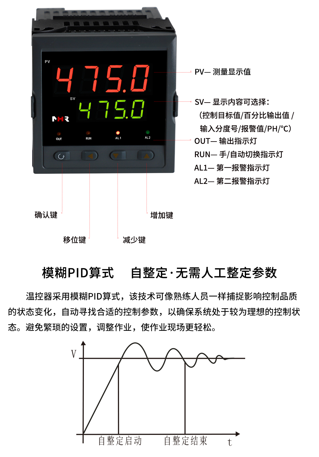 虹潤公司是專(zhuān)業(yè)生產(chǎn)溫控器的國家專(zhuān)精特新“小巨人”企業(yè)。生產(chǎn)的傻瓜式智能溫控器,具有傻瓜式操作,真正人工智能算式,無(wú)需人工整定參數,控制精度可達±0.1°C,高抗干擾等特點(diǎn)。產(chǎn)品獲得模糊PID控制儀及控制方法、人工智能調節器、智能化控制器、移相觸發(fā)控制器、閥門(mén)自動(dòng)手動(dòng)無(wú)擾動(dòng)操作控制方法及裝置等5項國家發(fā)明專(zhuān)利,主持起草工業(yè)過(guò)程控制系統用模擬輸入兩位或多位輸出儀表、物聯(lián)網(wǎng)智能溫度儀表通用技術(shù)條件、工業(yè)過(guò)程測量和控制系統用智能調節器等3項國家標準,以及通信系統多通道數據采集控制終端規范軍用標準,參與國際5G標準制定,取得傻瓜式模糊PID調節儀等3項相關(guān)軟件著(zhù)作權。產(chǎn)品廣泛應用于電力、石化,冶金、制藥、食品等幾乎所有工業(yè)現場(chǎng),實(shí)現精準控溫,保障生產(chǎn)安全與質(zhì)量。
